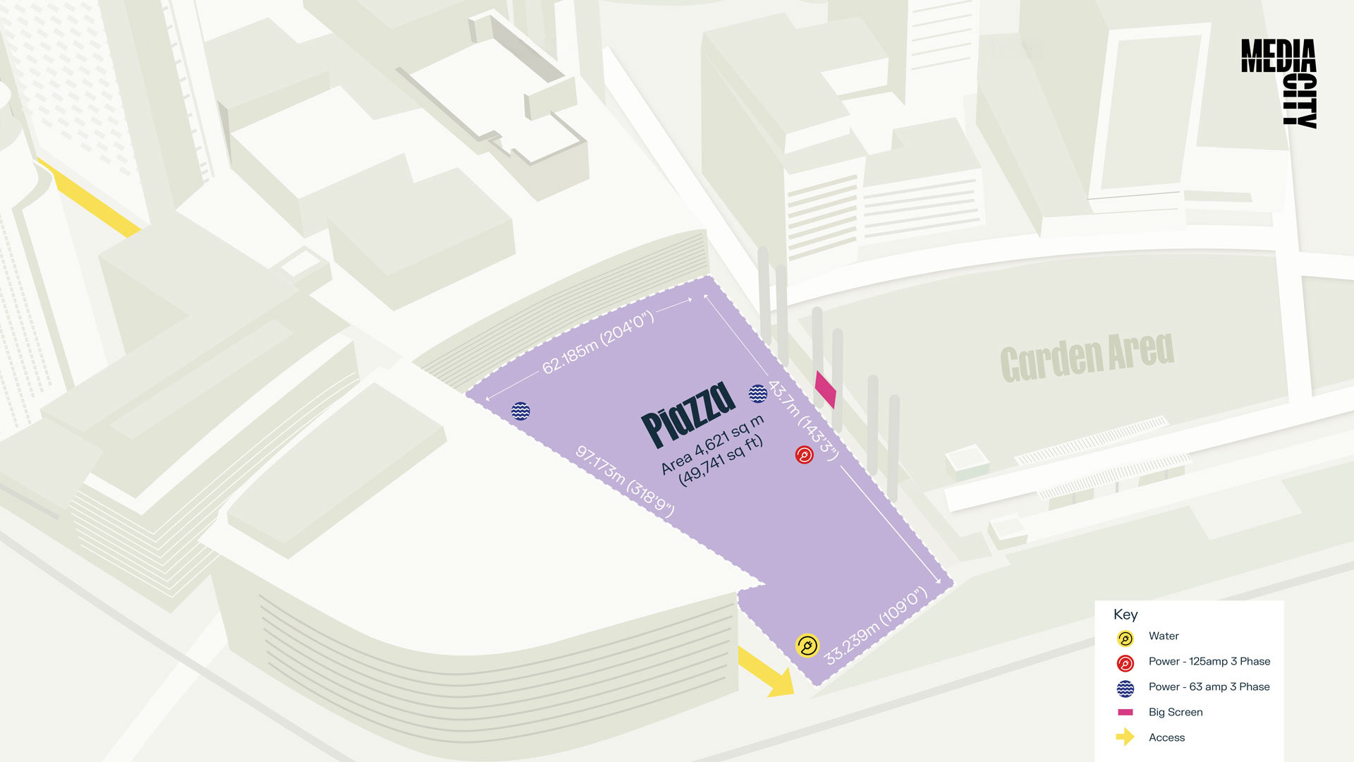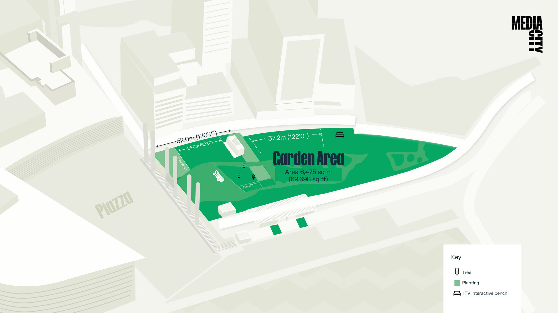 Illustrated location map to support advertiser pitches, clearly defining placement opportunities within MediaCity.