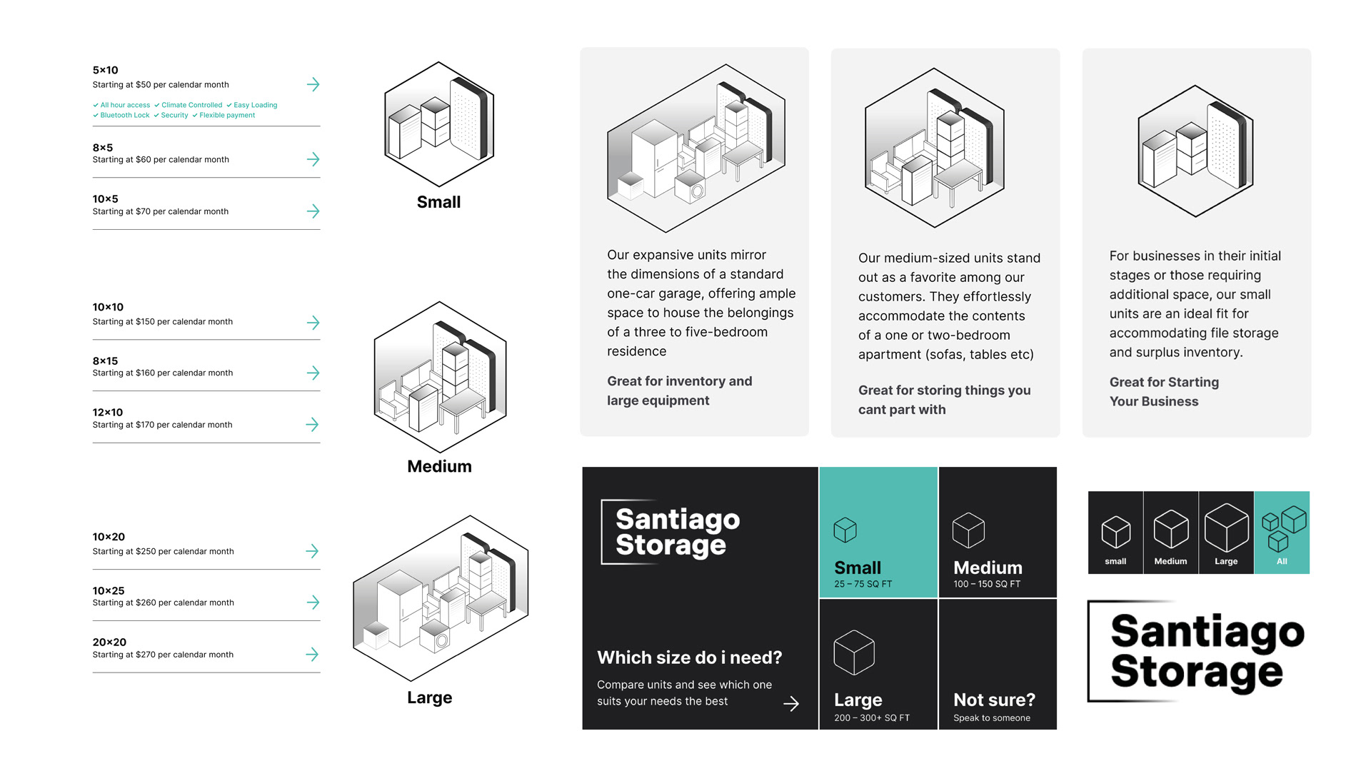 Simplified, easy-to-understand size illustrations to support customer decision-making during the booking process on a website catering to self -storage consumers.