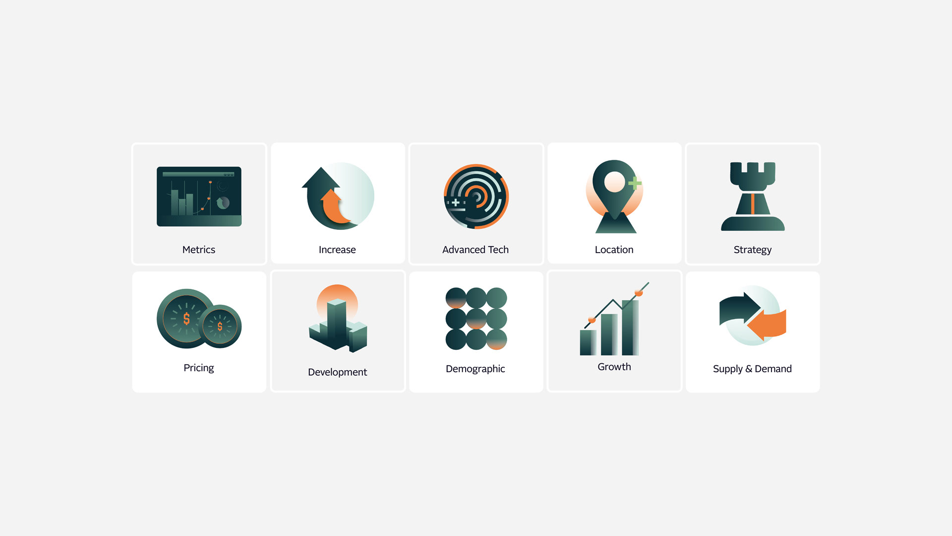 A collection of infographics, icons, and map illustrations from a variety of live projects, created to provide clarity and ease of use for consumers in property, retail, tech and Media.